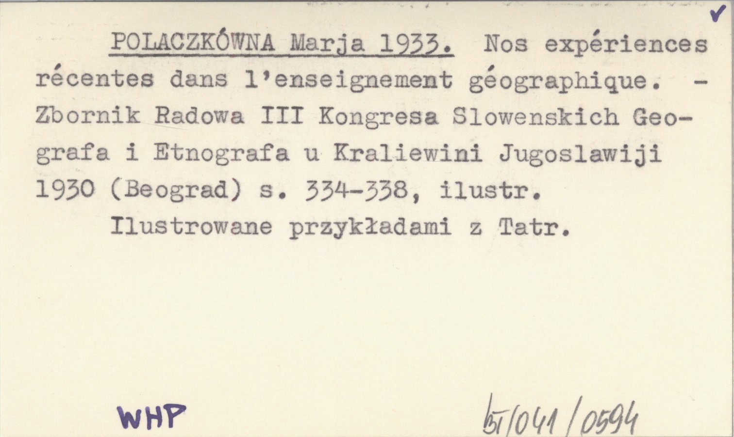 POLACZKÓWNA Marja 1933 Nos expériences récentes dans l'enseignement géographique.