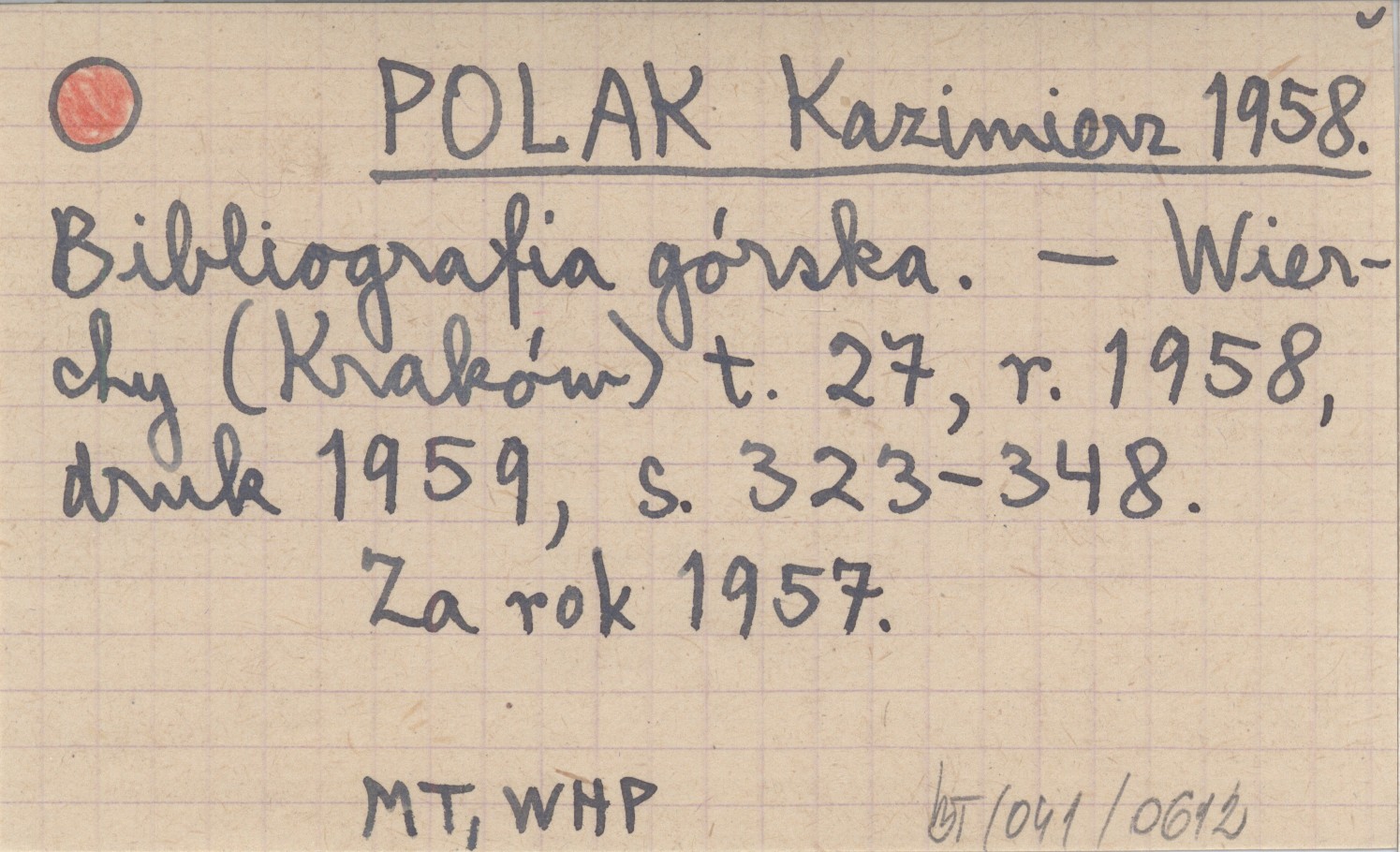 Wierchy (Kraków) , T. 27, r. 1958, druk 1959: 323-348. Za rok 1957.
