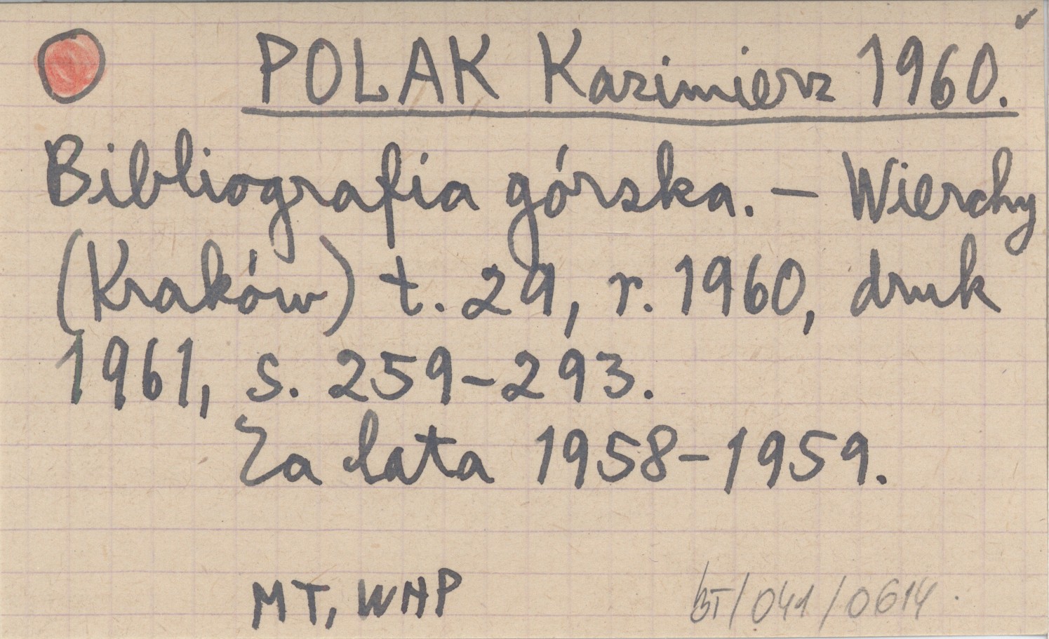 Wierchy (Kraków) , T. 29, r. 1960, druk 1961: 259-293. Za lata 1958-1959.