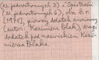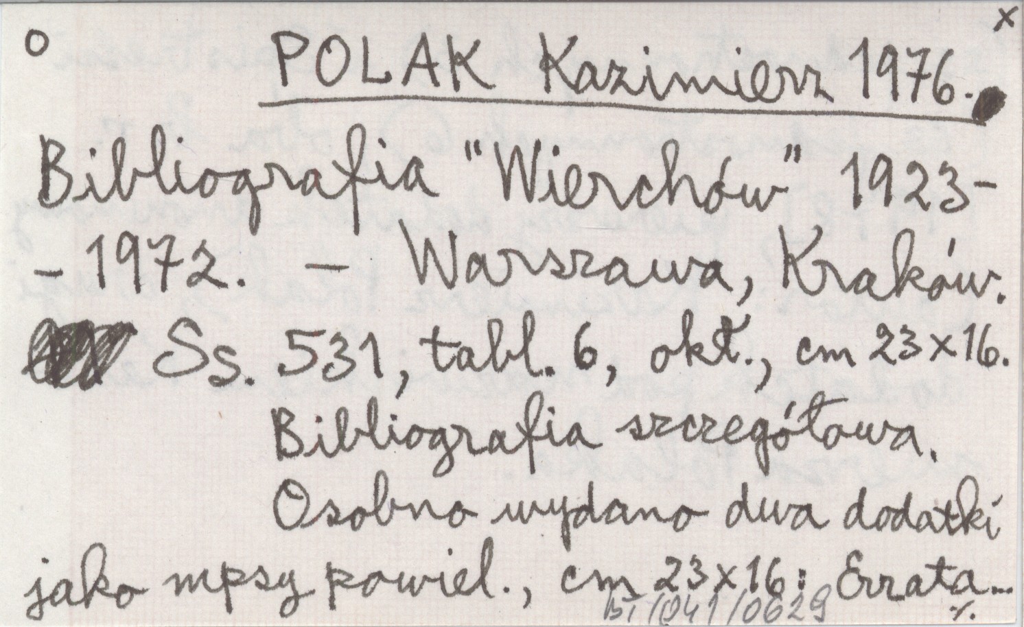 Warszawa ; Kraków ; , 531 s., 6 k., okł., 23x16 cm. Bibliografia szczegółowa. Osobno wydano dwa dodatki jako maszynopisy powielane, 23x16 cm. Errata (3 s. jednostronne) i Spis treści (6 s. jednostronnych), oba 1978, pierwszy dodatek anonimowy (autor: Kazimierz Polak), drugi dodatek pod nazwiskiem Kazimierza Polaka.