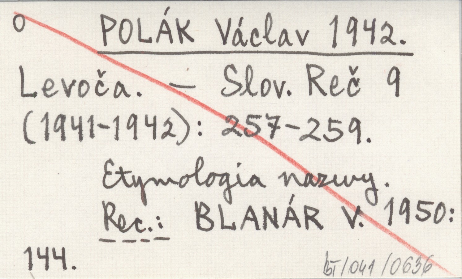 Slovenská Reč, 9 (1941-1942): 257-259. Etymologia nazwy. REC: BLANÁR V. 1950: 144