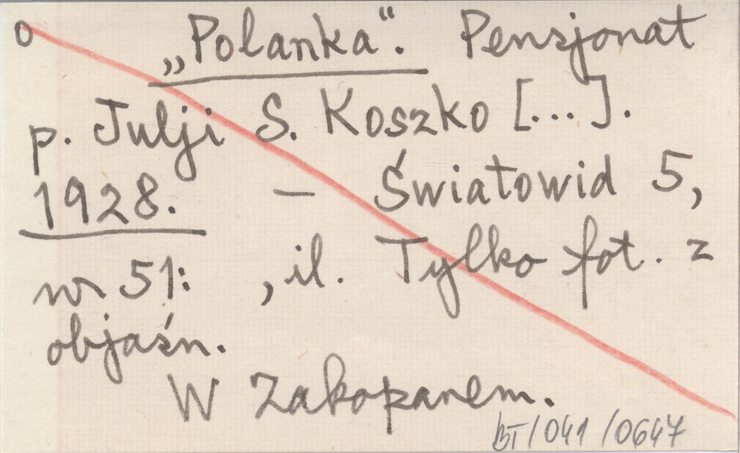 "Polanka". Pensjonat p. Julji S. Koszko [...]. 1928