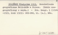 POLIŃSKI Władysław 1919 Rozsiedlenie geograficzne Helicidów w Polsce. (Szkic zoo-geograficzny z mapką).