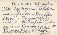 POLIŃSKI Władysław 1926 Spostrzeżenia ekologiczne nad wypławkami Planaria alpina i Pl. gonocephala w Polsce. Observations écologiques sur Planaria alpina et Pl. gonocephala en Pologne.