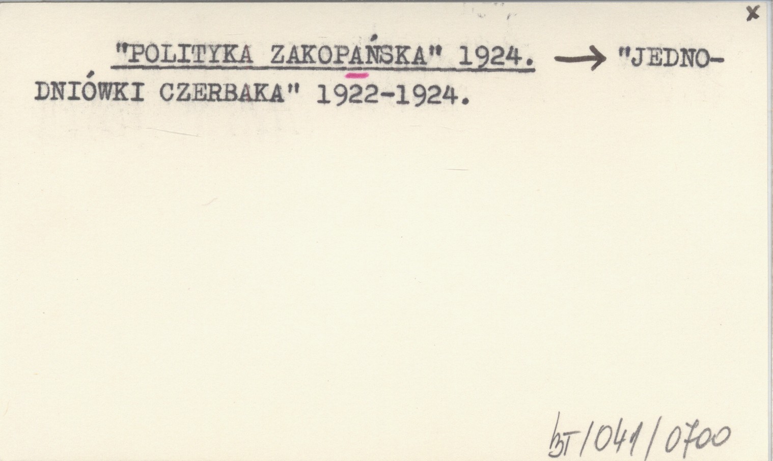 "JEDNODNIÓWKI CZERBAKA" 1922-1924