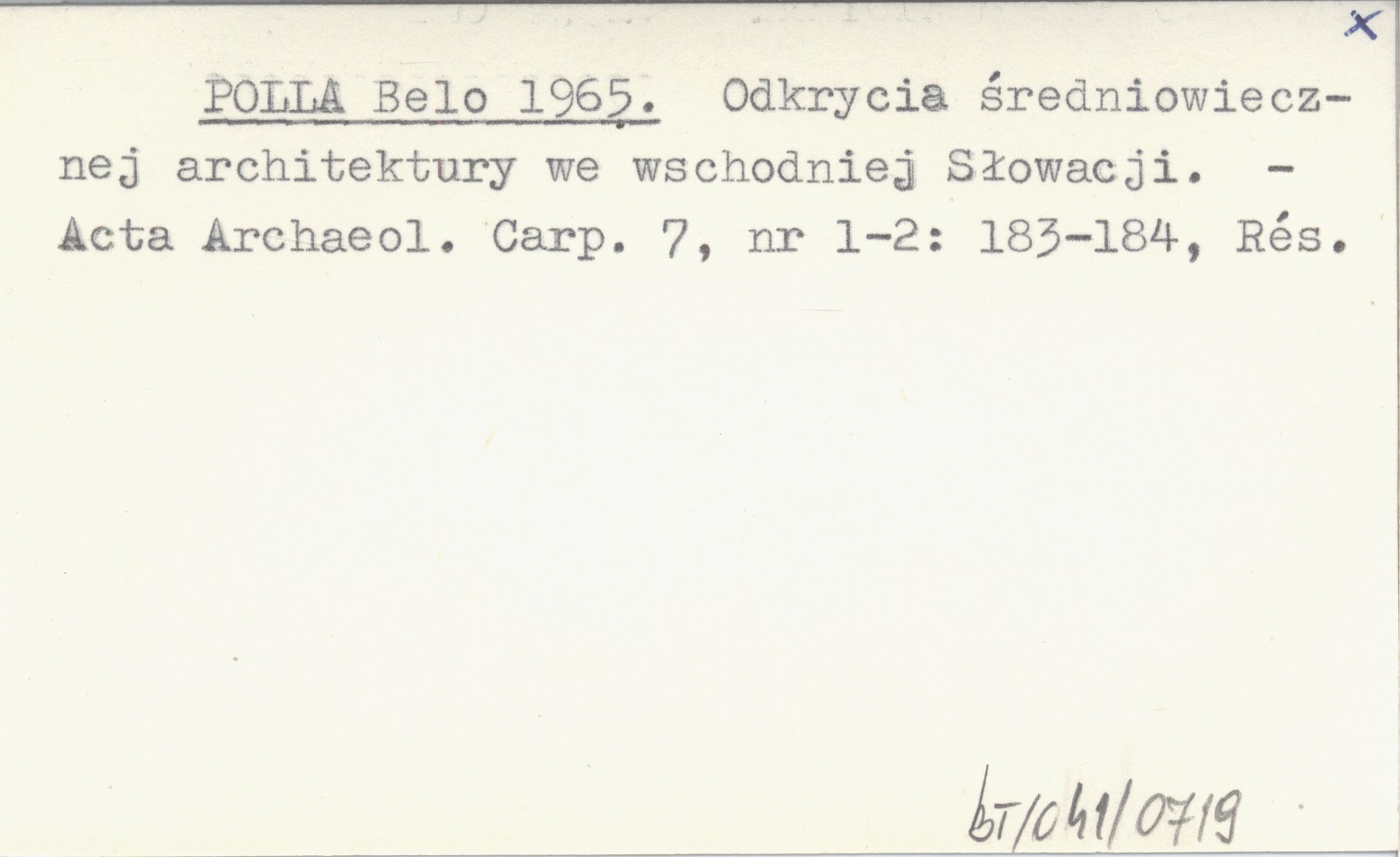 POLLA Belo 1965 Odkrycia średniowiecznej architektury we wschodniej Słowacji.