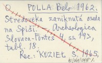 POLLA Belo 1962 Stredoveka zaniknutá osada na Spiši.
