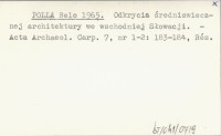 POLLA Belo 1965 Odkrycia średniowiecznej architektury we wschodniej Słowacji.