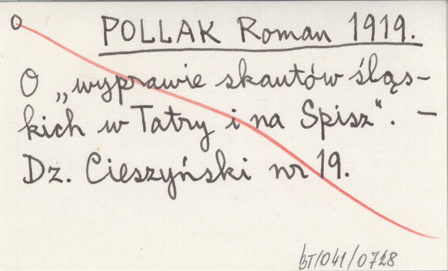 POLLAK Roman 1919 O "wyprawie skautów śląskich w Tatry i na Spisz".