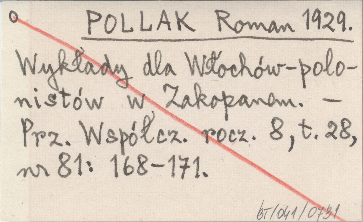 POLLAK Roman 1929 Wykłady dla Włochów-polonistów w Zakopanem.