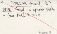 R. P. [POLLAK Roman] 1919 Górale a sprawa spiska.