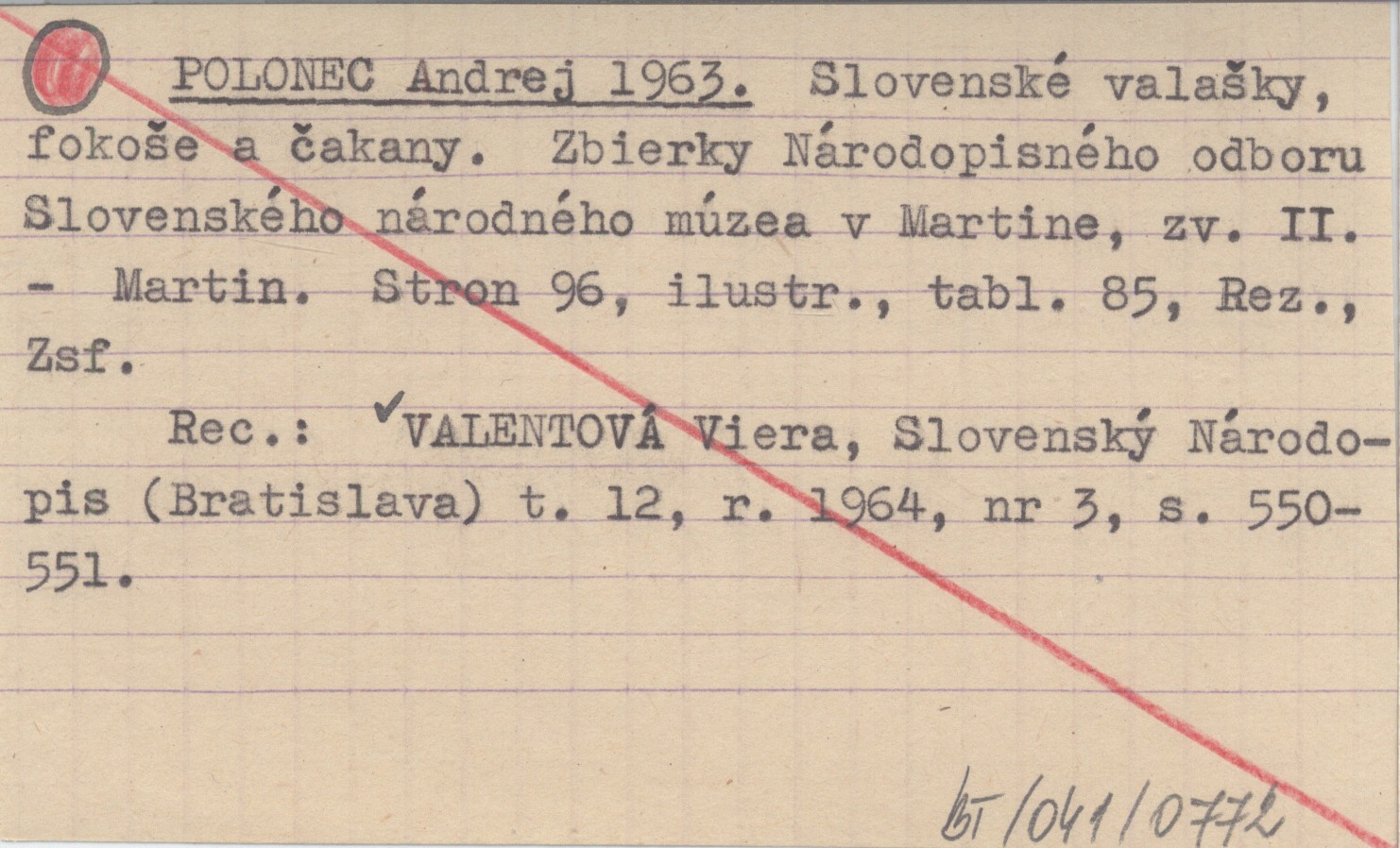 POLONEC Andrej 1963 Slovenské valaąky, fokoąe a čakany. Zbierky Národopisného odboru Slovenského národného múzea v Martine, zv. II.