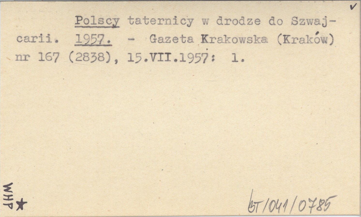 Gazeta Krakowska (Kraków) , Nr 167 (2838) (15 VII 1957): 1.