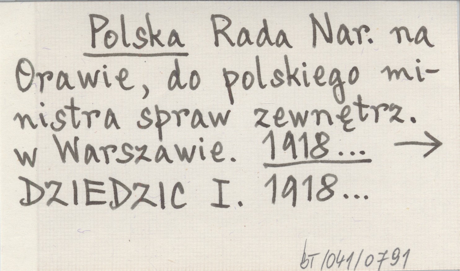 Polska Rada Nar. na Orawie, do polskiego ministra spraw zewnętrz. w Warszawie. 1918...