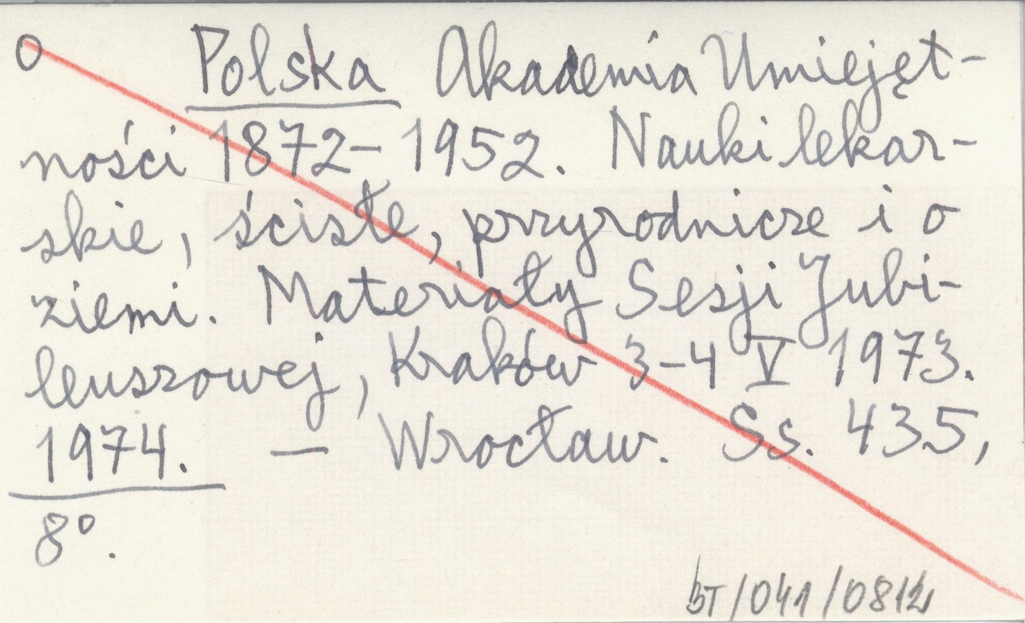 Polska Akademia Umiejętności 1872-1952. Nauki lekarskie, ścisłe, przyrodnicze i o ziemi. Materiały Sesji Jubileuszowej, Kraków 3-4 V 1973. 1974