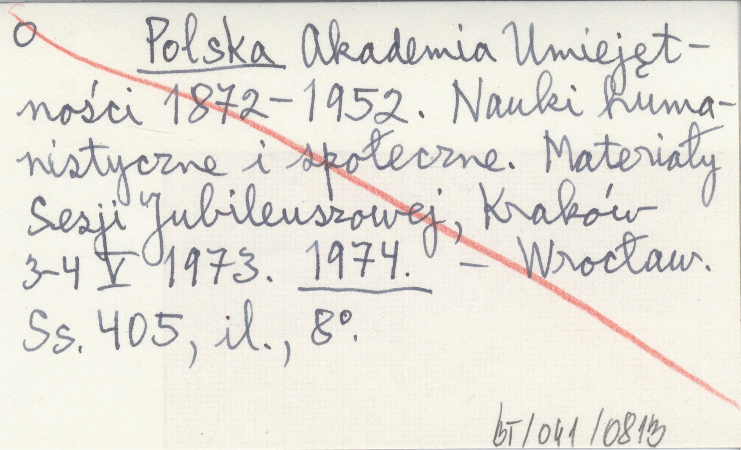 Polska Akademia Umiejętności 1872-1952. Nauki humanistyczne i społeczne. Materiały Sesji Jubileuszowej, Kraków 3-4 V 1973. 1974
