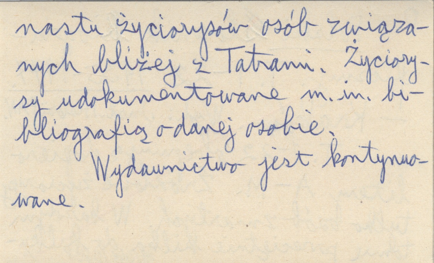 Instytut Historii Polskiej Akademii Nauk, Kraków , T. 1-22 obejmują dopiero litery A-M. Źródłowe życiorysy tylko osób zmarłych. W każdym tomie przeciętnie kilka do kilkunastu życiorysów osób związanych bliżej z Tatrami. Życiorysy udokumentowane m. in. bibliografią o danej osobie. Wydawnictwo jest kontynuowane.