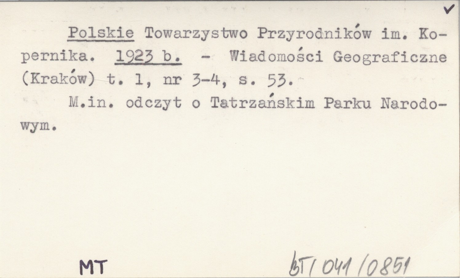 Wiadomości Geograficzne (Kraków) , T. 1, nr 3-4: 53. M. in. odczyt o Tatrzańskim Parku Narodowym.
