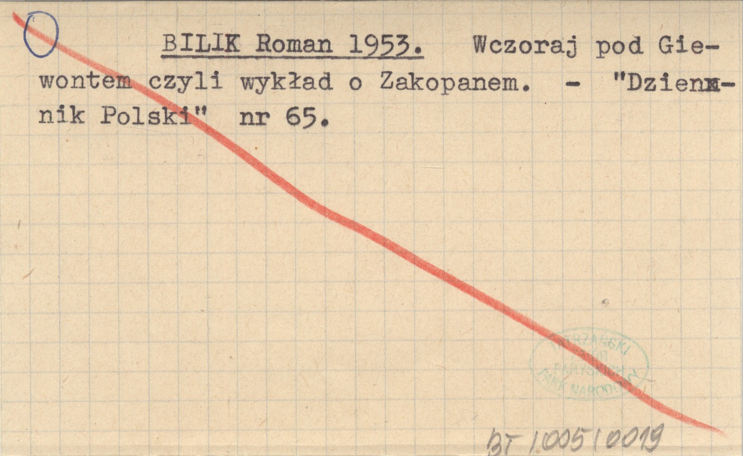 BILIK Roman 1953 Wczoraj pod Giewontem czyli wykład o Zakopanem.