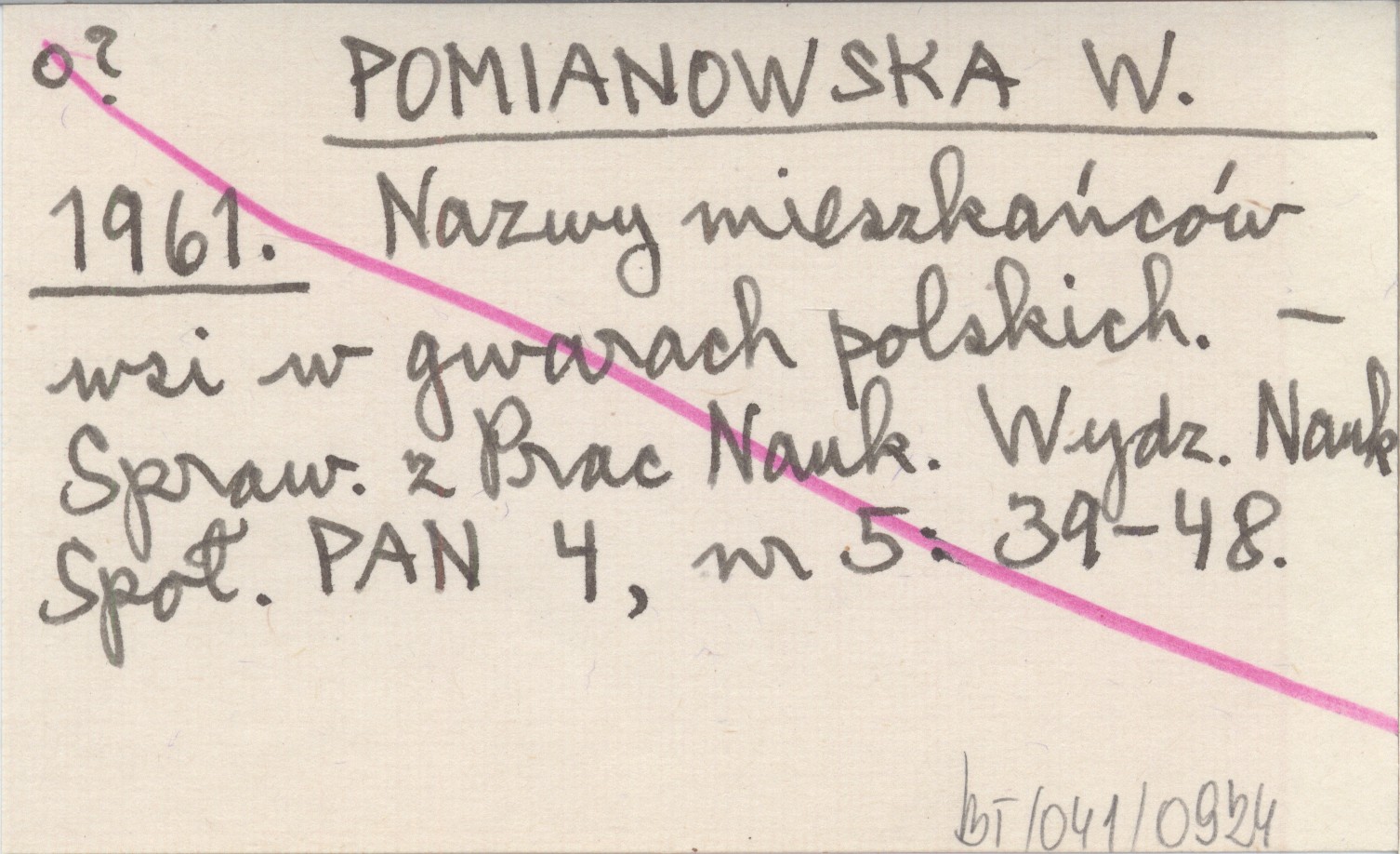 POMIANOWSKA W. 1961 Nazwy mieszkańców wsi w gwarach polskich.