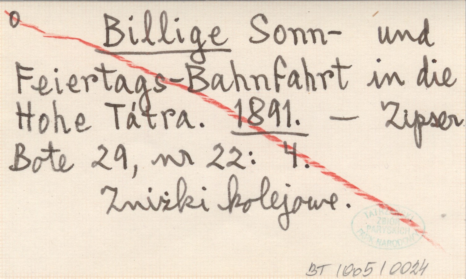 Billige Sonn- und Feiertags-Bahnfahrt in die Hohe Tátra. 1891