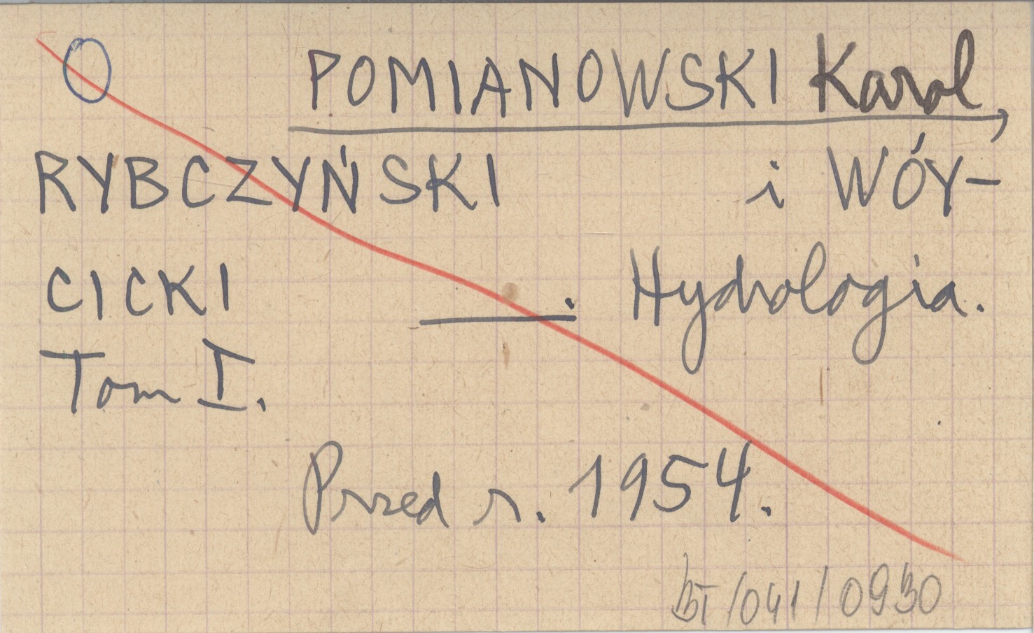 POMIANOWSKI Karol RYBCZYŃSKI. ; WÓYCICKI. ; przed 1954 Hydrologia.