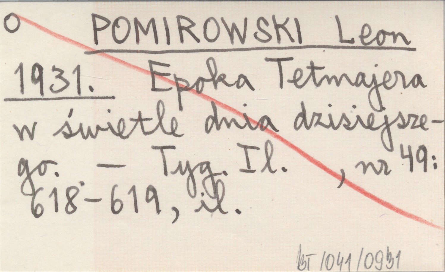 POMIROWSKI Leon 1931 Epoka Tetmajera w świetle dnia dzisiejszego.
