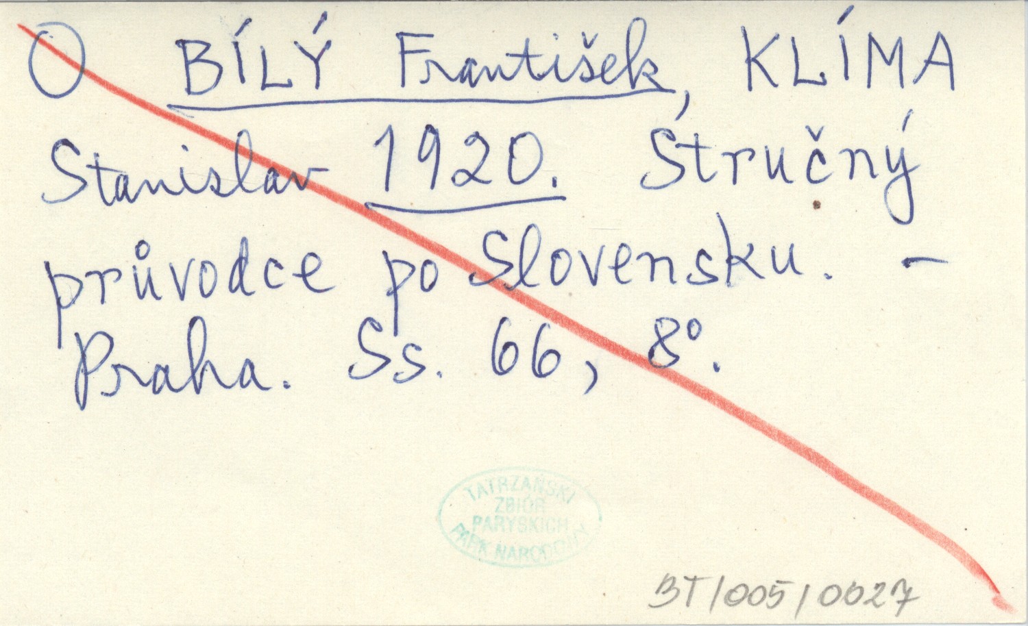 BÍLÝ František KLÍMA, Stanislav. ; 1920 Stručný průvodce po Slovensku.