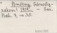 Pomóżmy Górnoślązakom! 1919...