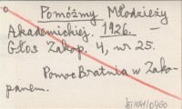 Pomóżmy Młodzieży Akademickiej. 1926