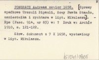 PONGRACZ Andreas sen. 1658 [Sprawy spadkowe Urszuli Dipauli, żony Pawła Stančo, namiestnika i rychtara w Lipt. Mikulaszu.]