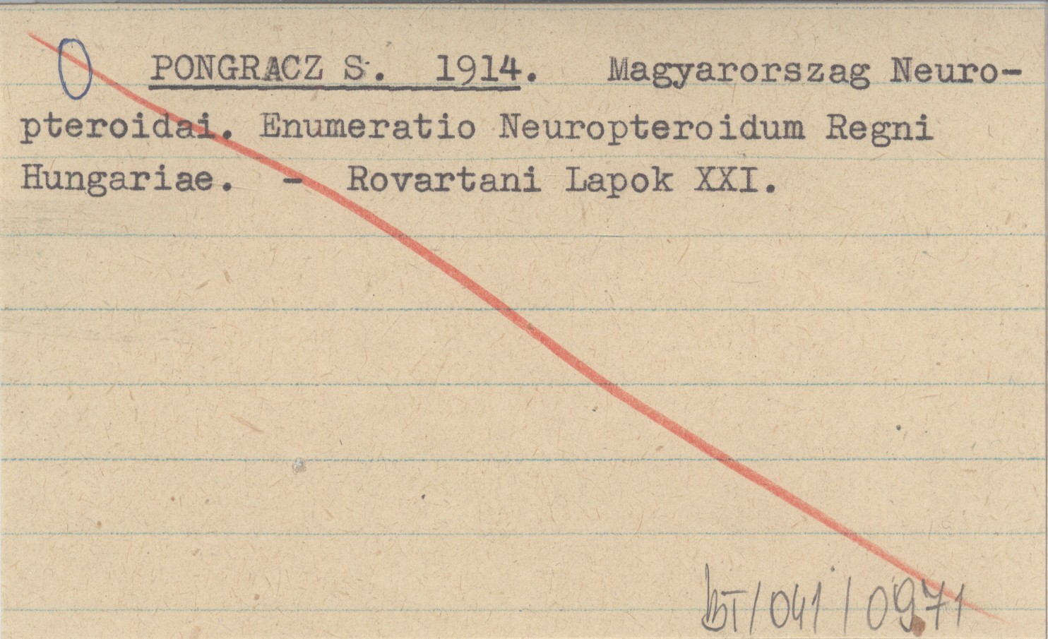 PONGRACZ S. 1914 Magyarorszag Neuropteroidai. Enumeratio Neuropteroidum Regni Hungariae.