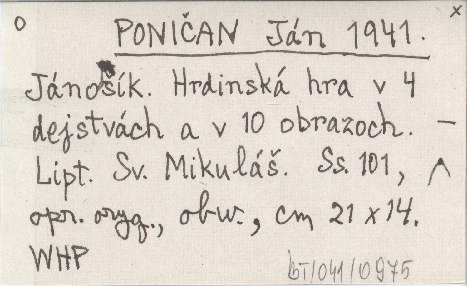 PONIČAN Ján 1941 Jánošík. Hrdinská hra v 4 dejstvách a v 10 obrazoch.