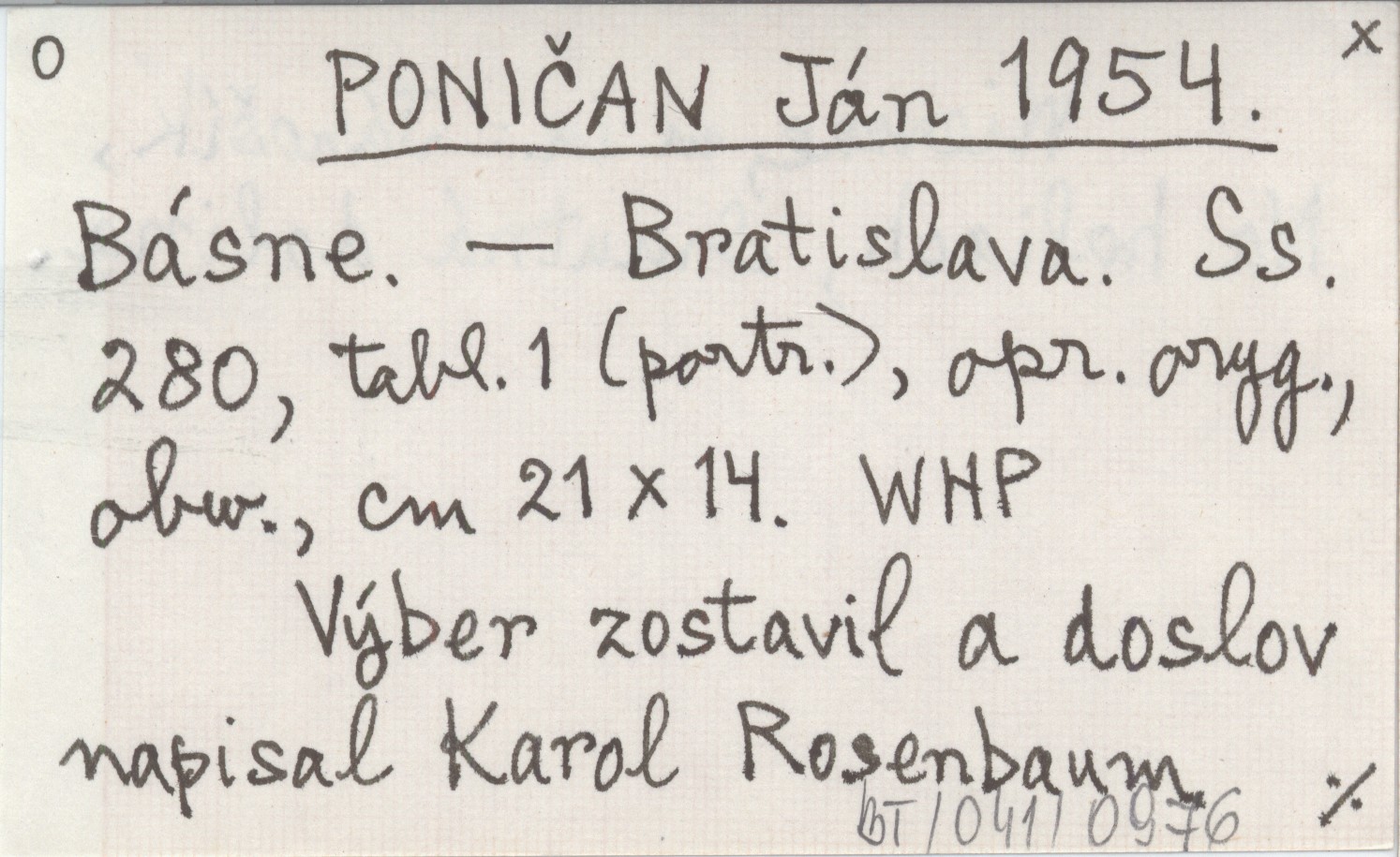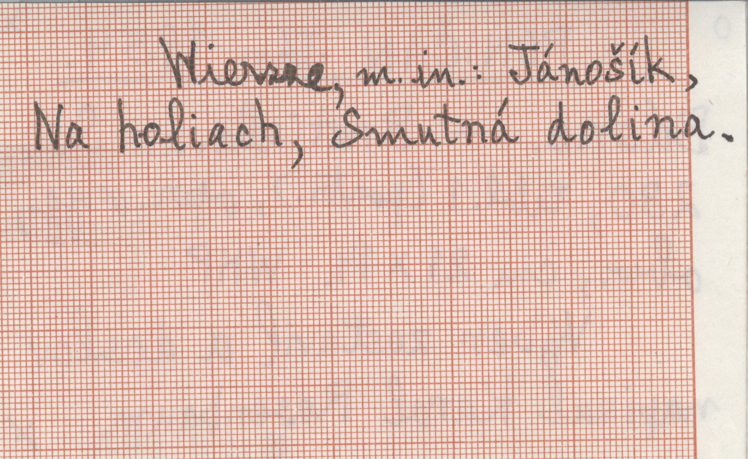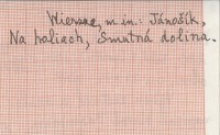 Bratislava , 280 s., 1 k. (port.), opr., obw., 21x14 cm. Wiersze, m. in. Jánošík, Na holiach, Smutná dolina. Výber zostavil a doslov napisal Karol Rosenbaum.