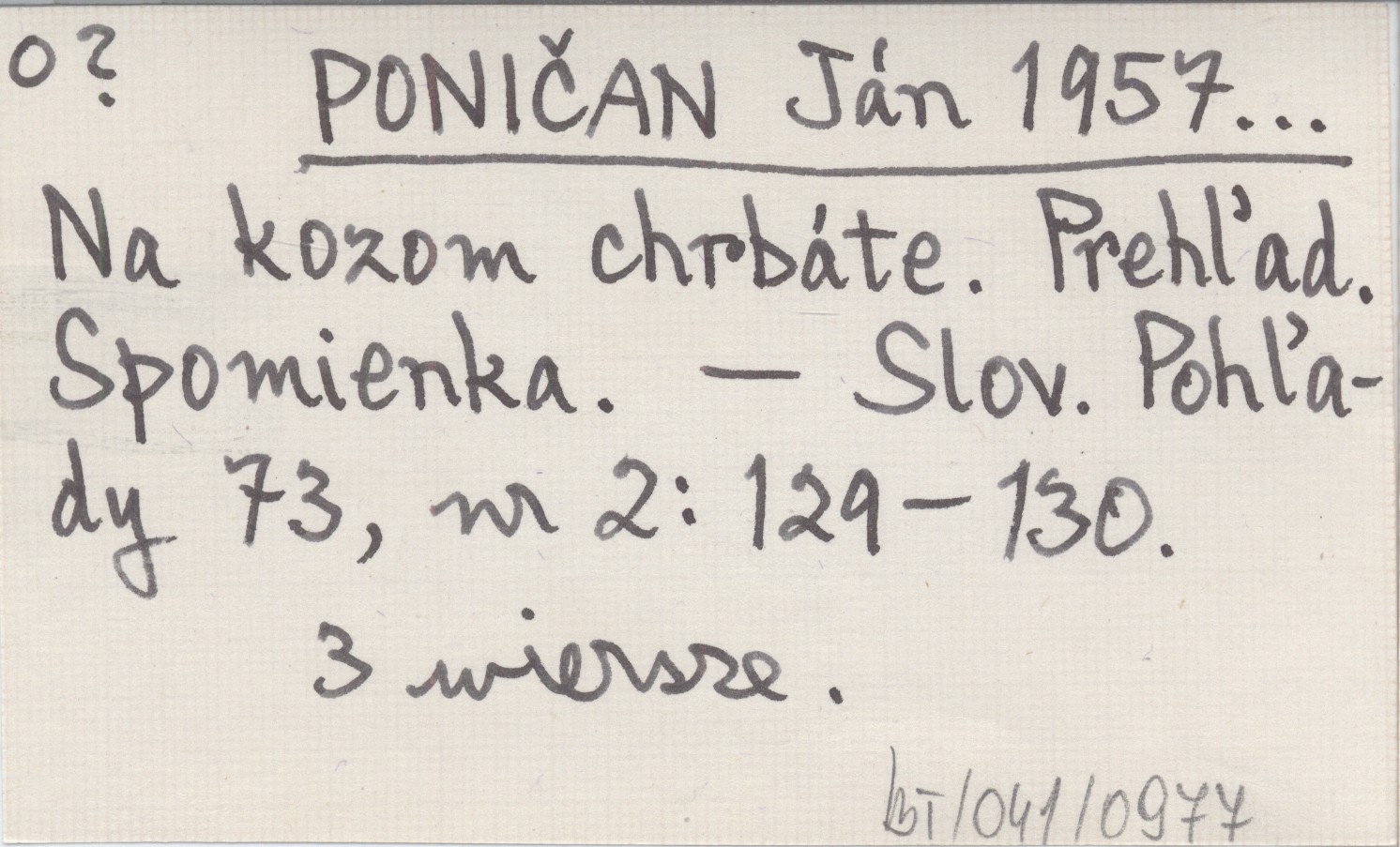 PONIČAN Ján 1957... Na kozom chrbáte. Prehľad. Spomienka.