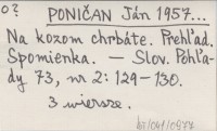 PONIČAN Ján 1957... Na kozom chrbáte. Prehµad. Spomienka.