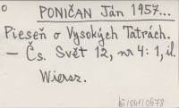 PONIČAN Ján 1957... Pieseň o Vysokých Tatrách.