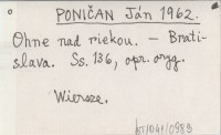 PONIČAN Ján 1958 Riava neutícha.