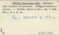 PONIKŁO Stanisław 1890 Zakopane jako miejsce klimatyczne. Studyum klimatologiczne.