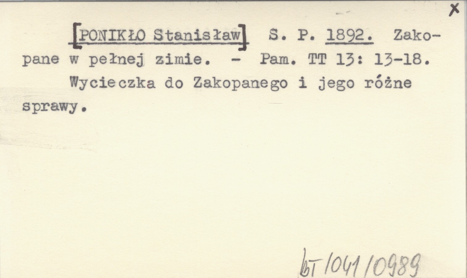 S. P. [PONIKŁO Stanisław] 1892 Zakopane w pełnej zimie.