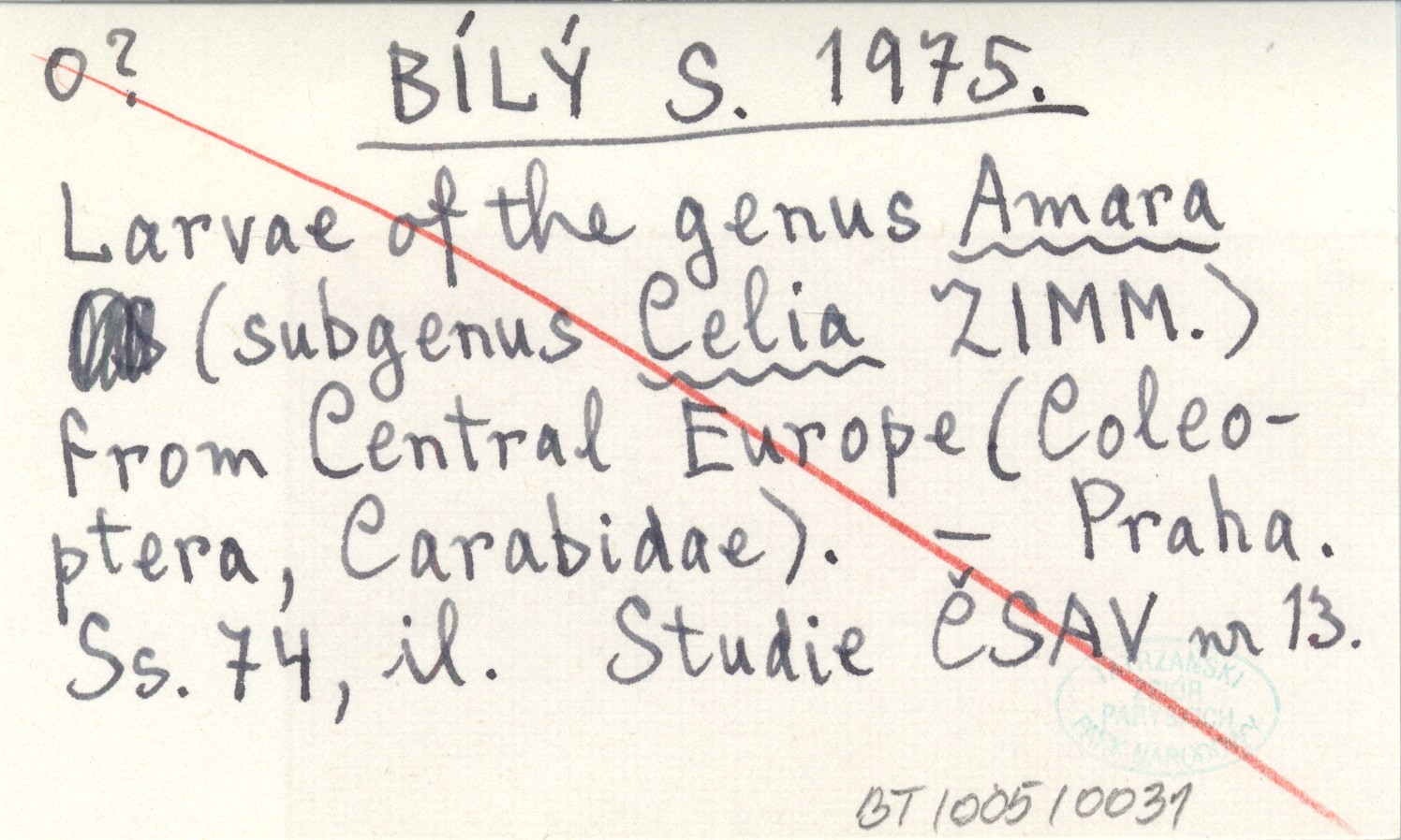 BÍLÝ S. 1975 Larvae of the genus Amara (subgenus Celia ZIMM.) from Central Europe (Coleoptera, Carabidae).