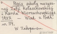 Popis szkoły muzycznej Zofji Kołaczkowskiej i Karola Wierzuchowskiego. 1927