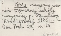 Popis muzyczny uczniów prywatnej szkoły muzycznej p. Stanisławy Hirschlerowej. 1935...