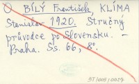BÍLÝ František KLÍMA, Stanislav. ; 1920 Stručný průvodce po Slovensku.