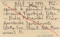 BÍLÝ Julius 1941 Příspěvek k poznání květeny rozsivek Vysokých Tater.