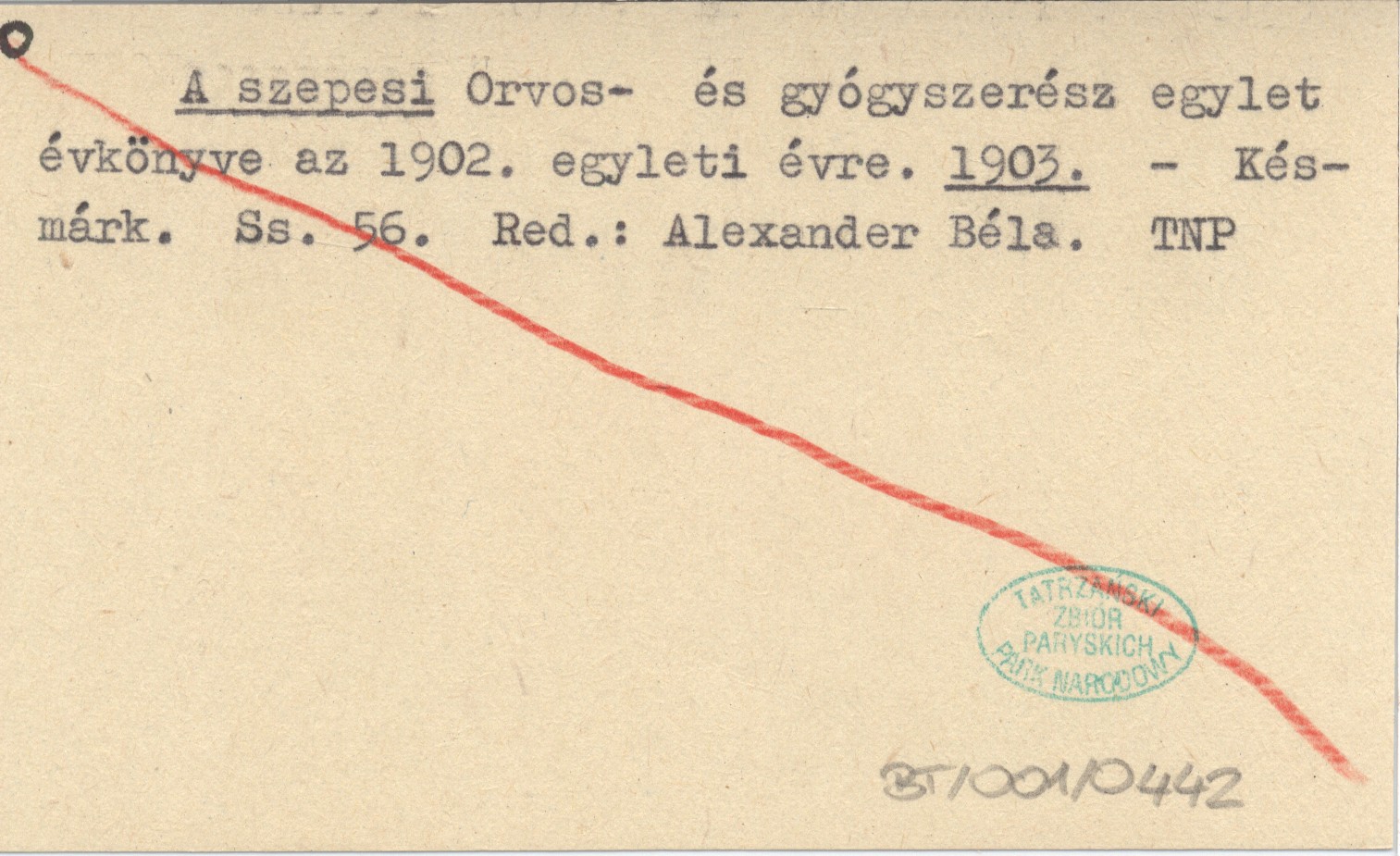 RED: Béla, Alexander. ; A szepesi Orvos- és gyógyszerész egylet évkönyve az 1902. egyleti évre. 1903