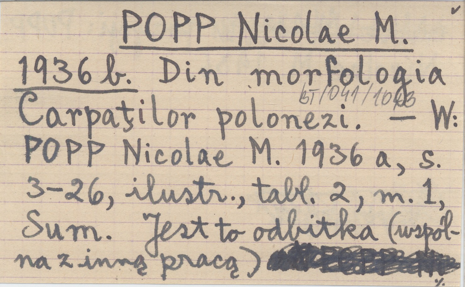POPP Nicolae M. 1936 b Din morfologia Carpaţilor polonezi.