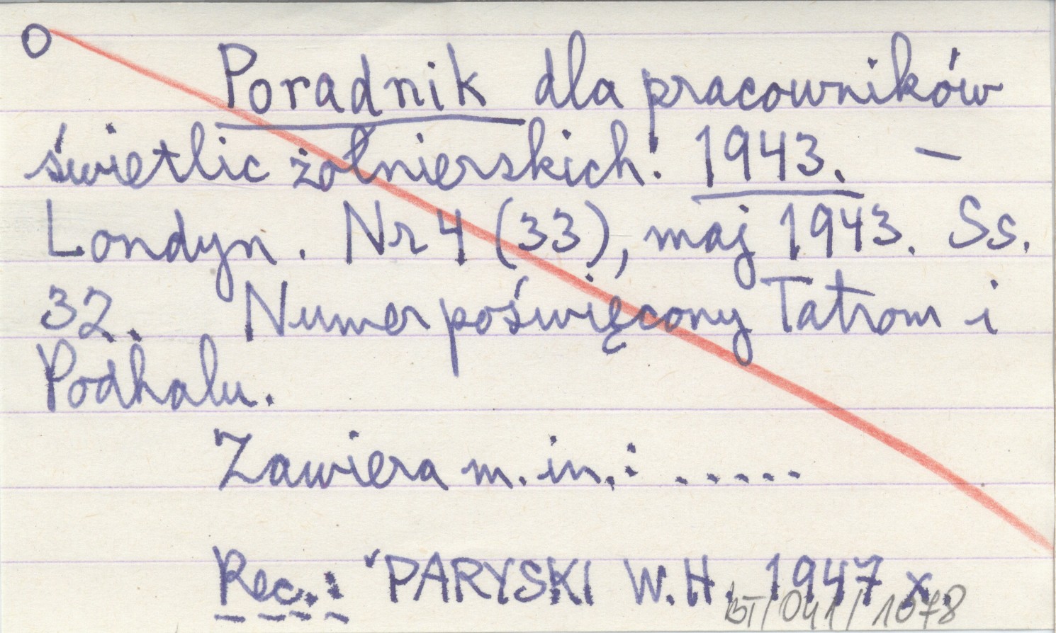 Poradnik dla pracowników świetlic żołnierskich. 1943