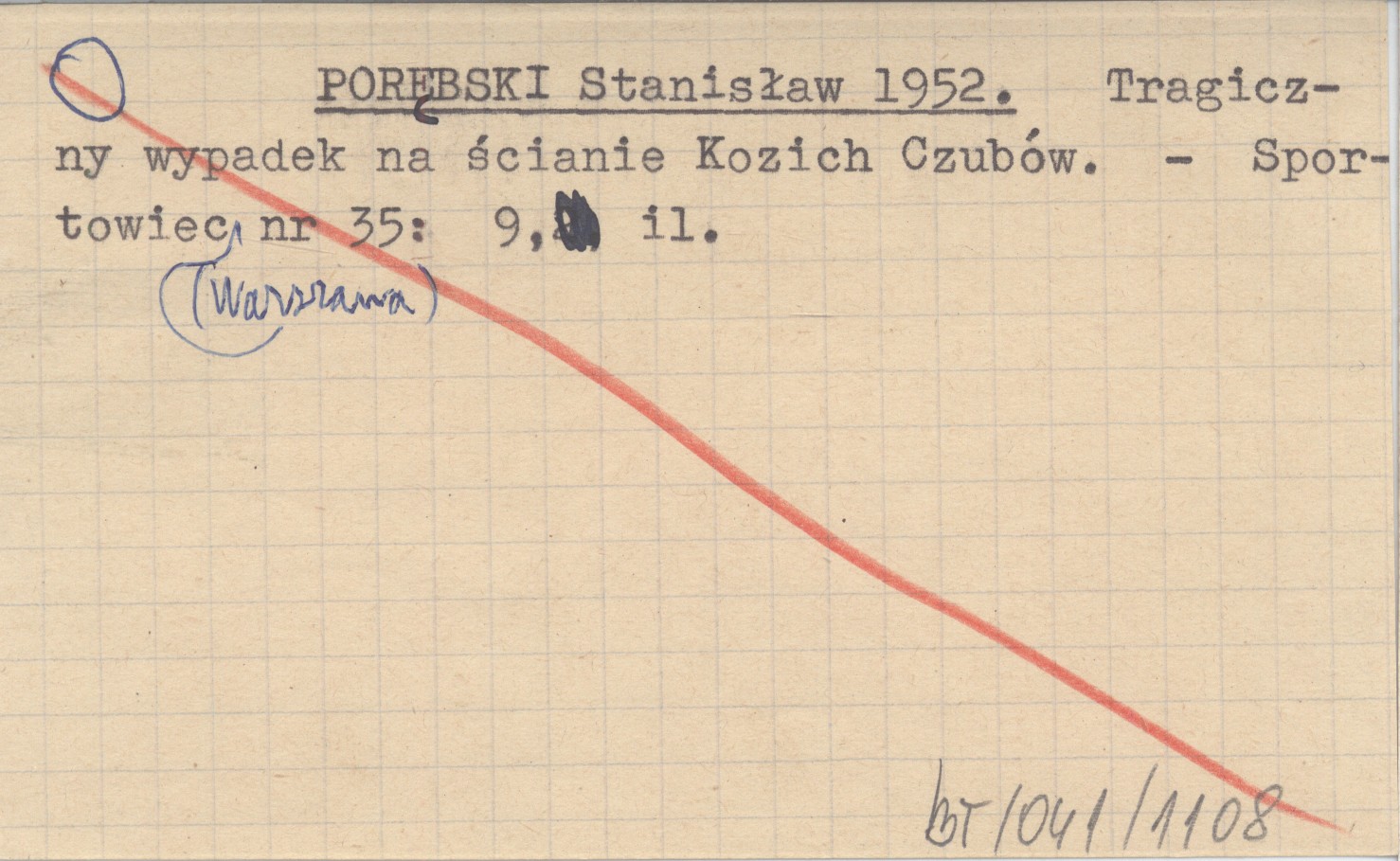PORĘBSKI Stanisław 1952 Tragiczny wypadek na ścianie Kozich Czubów.