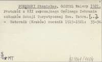 PORĘBSKI Stanisław GOETEL, Walery. ; 1921 Protokół z XII zwyczajnego Ogólnego Zebrania członków Sekcji Turystycznej Tow. Tatrz. [...].
